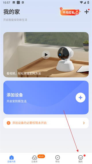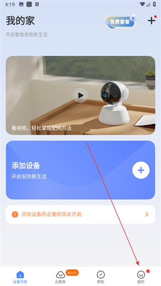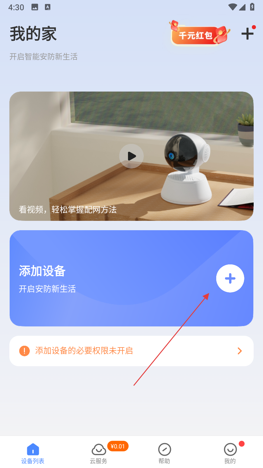1、打开v380pro应用进入我的家界面,在界面中找到添加设备板块,点击其右侧的+号按钮。
