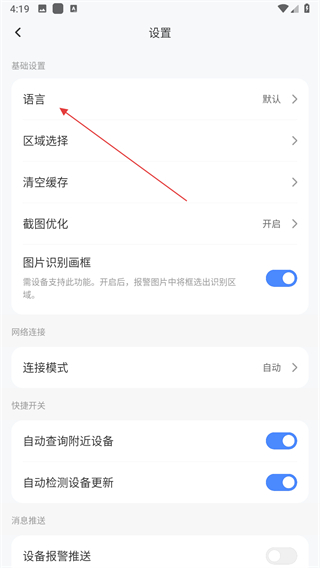 3、进入设置界面后,找到并点击语言的选项,进入选择页面。