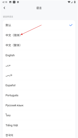 4、在语言选择页面,从列表中选择中文(简体)即可。