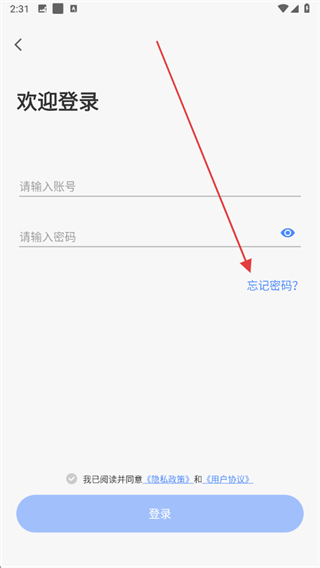 1、进入v380pro,找到忘记密码选项并点击,进入找回密码页面。