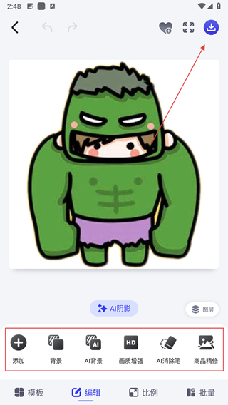 3、选中图片后进入编辑界面,底根据需求选择相应工具对图片进行处理,完成编辑后,点击下载。