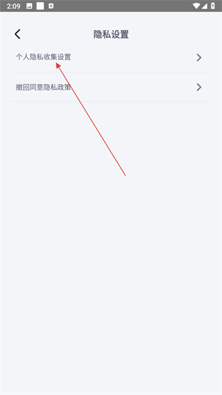 3、在隐私设置界面选择个人隐私收集设置选项,进入具体的权限管理页面。