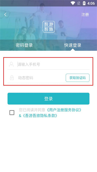 3、在登录页面的快速登录板块,依次输入对应的手机号和动态密码,完成信息填写。