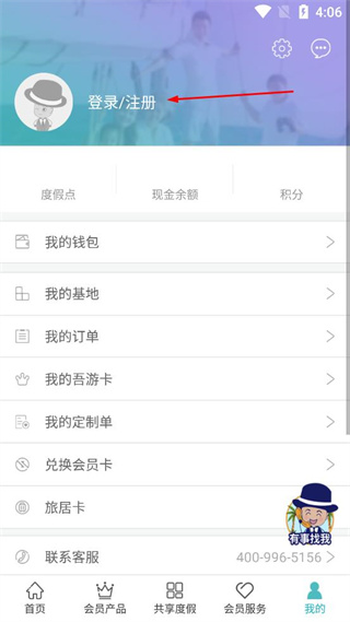 2、在我的页面中,点击页面上方显示的登录/注册区域,跳转至登录页面。