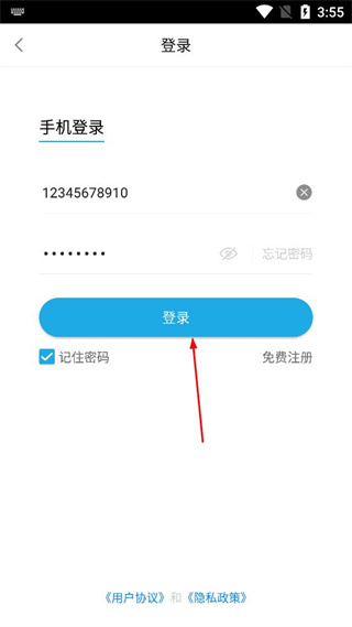 4、确认手机号与密码输入无误后,点击页面中间的登录按钮,完成登录操作。