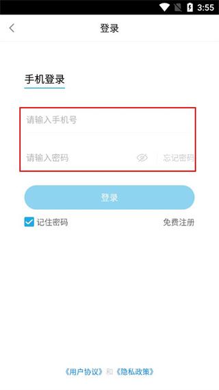 3、在登录页面的手机登录板块,依次输入对应的手机号和密码,完成信息填写。