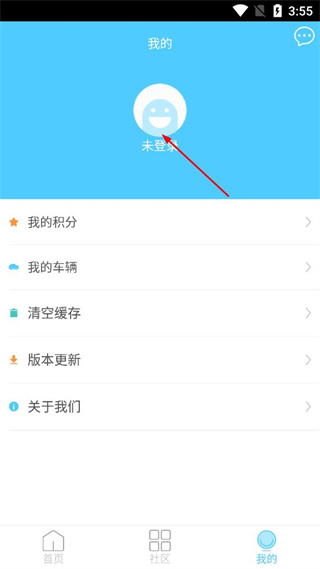 2、在我的页面中,点击页面上方显示的未登录区域,跳转至登录页面。