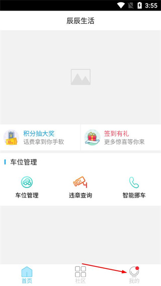 1、打开辰辰生活软件,点击首页底部导航栏最右侧的我的选项,进入我的页面。