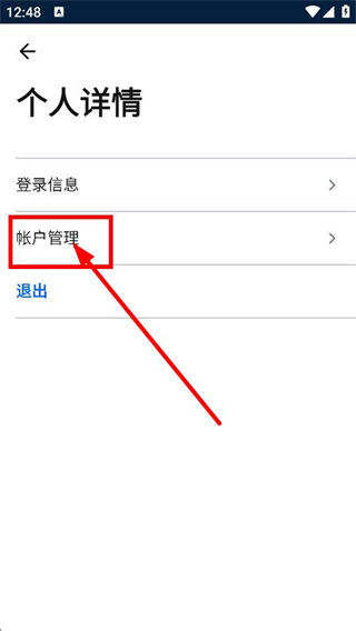 3、在个人详情页面,点击帐户管理,进入管理您的账号页面。