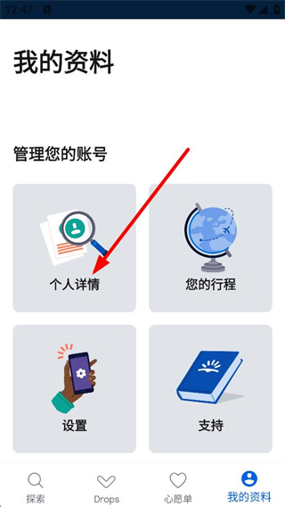 1、在探索页面,点击底部我的资料,进入个人资料页面。