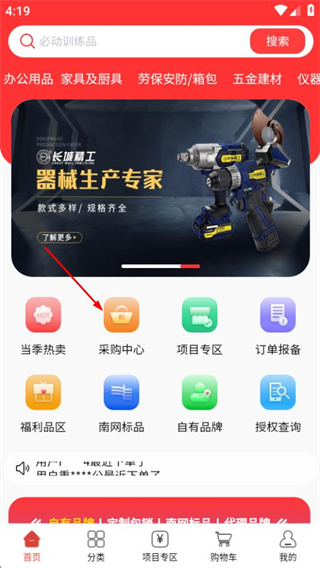 1、在国集采商城首页,点击采购中心选项,进入采购中心页面。