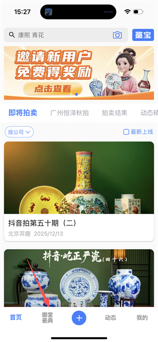 1、在多宝首页,点击底部的御堂瓷典选项,进入对应页面。