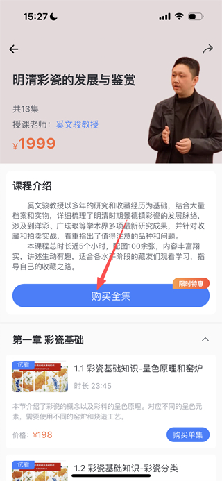 3、在课程详情页,点击购买全集按钮,进入登录页面。