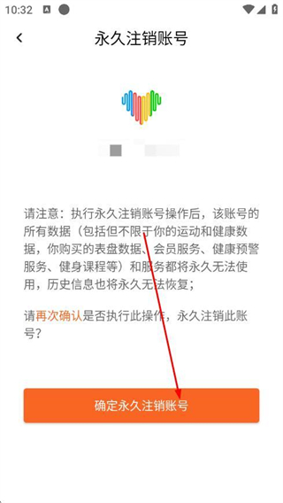 5、在永久注销账号页面点击确定永久注销账号按钮,即可完成账号注销。