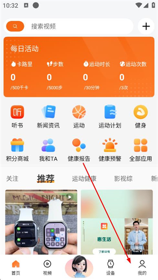 1、打开wearfitpro应用,点击底部导航栏最右侧我的选项。
