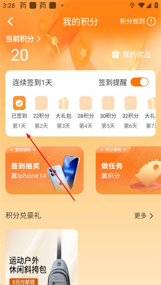 3、在我的积分页面完成每日签到,可获得对应积分。