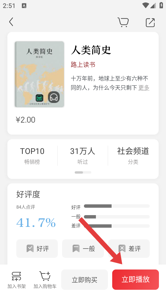 2、在这本书籍的详情页,点击立即播放的按钮,进入听书播放的界面。