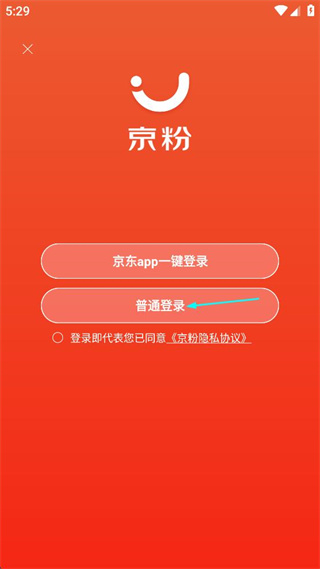 2、进入京粉的登录选择页面,找到普通登录选项,点击该选项进入账号密码输入界面。