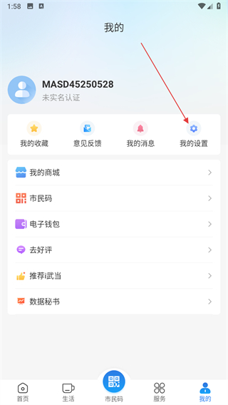 1、打开i武当APP,进入个人页面后点击我的设置选项。