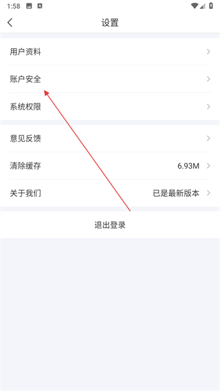 2、在设置页面点击账户安全选项,进入账户安全页面。