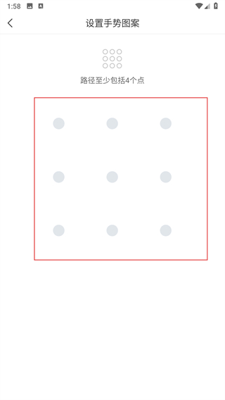 5、进入设置手势图案页面,绘制至少包含4个点的手势图案。
