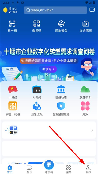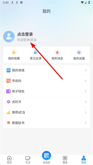 1、打开爱武当APP后,找到页面底部我的选项并点击,进入对应功能界面。