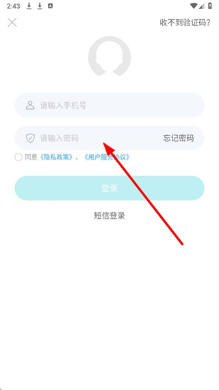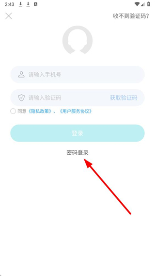 3、进入登录页面后,选择密码登录选项,切换至密码登录操作界面。