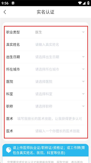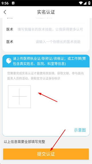 4、并上传医师资格证或工作牌,点击提交认证”,即可完成实名认证信息提交。