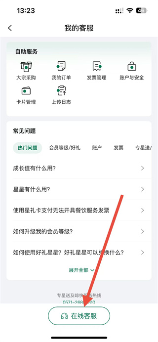 3、在我的客服页面,点击底部在线客服按钮,即可联系客服。
