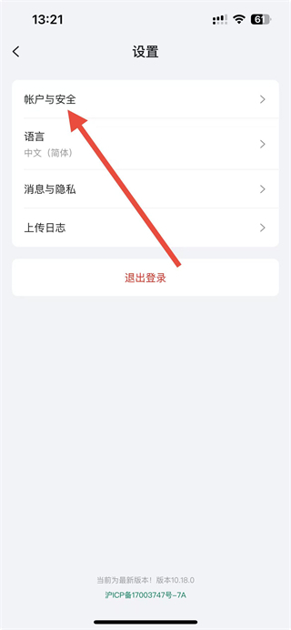 2、在页面中,找到设置选项并点击,进入设置界面,可查看账户与安全等相关设置项。