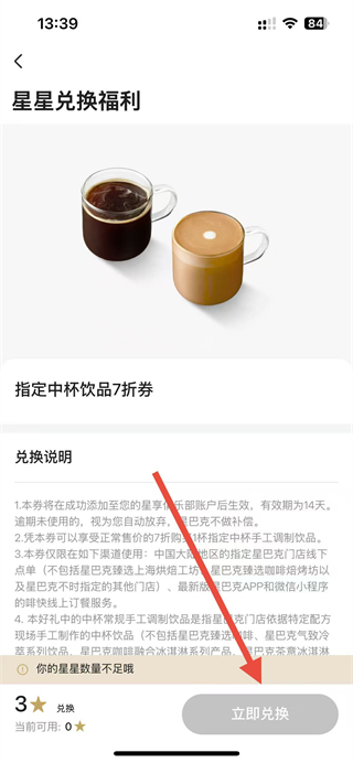 3、点击该券进入星星兑换福利详情页,确认兑换说明后,点击立即兑换按钮。