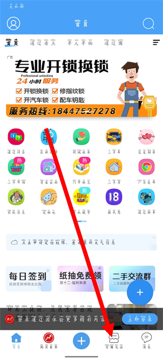 1、打开通辽团,点击底部的商家电话,进入商家电话页面。