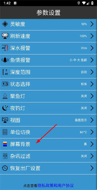 2、在参数设置页面点击屏幕背景选项,进入屏幕背景选择页面。