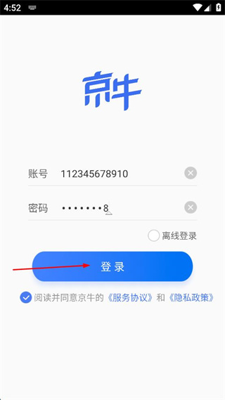 1、打开京牛APP后,查看展示的服务协议和隐私政策内容,确认后点击页面中的同意按钮。