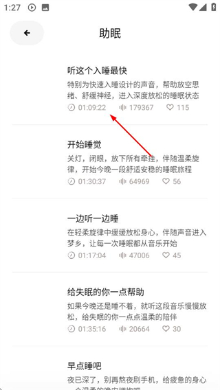 2、在助眠页面,点击目标音频,进入音频详情页。