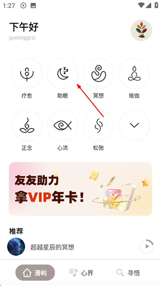 1、在Zenya首页,点击助眠选项,进入助眠内容页面。
