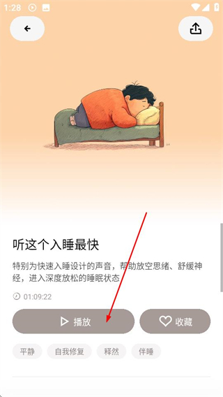 3、在详情页,点击播放按钮,即可开始收听该助眠音频。