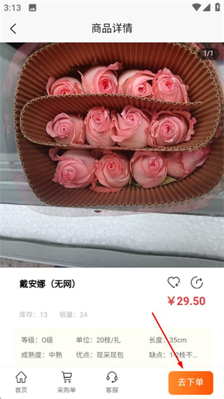 3、在比价页面,点击目标供应商的花材,进入商品详情页。