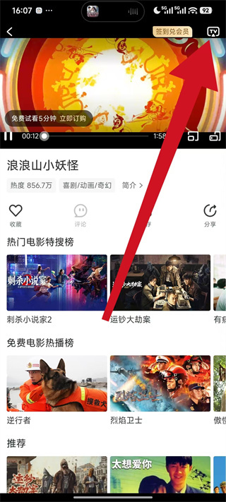 4、在视频播放界面中,找到投屏图标,按要求操作即可投屏到电视上播放。