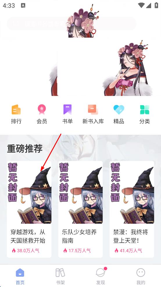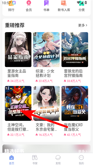 2、在APP主界面的重磅推荐区域,选择想要阅读的小说,点击进入该小说详情页面。