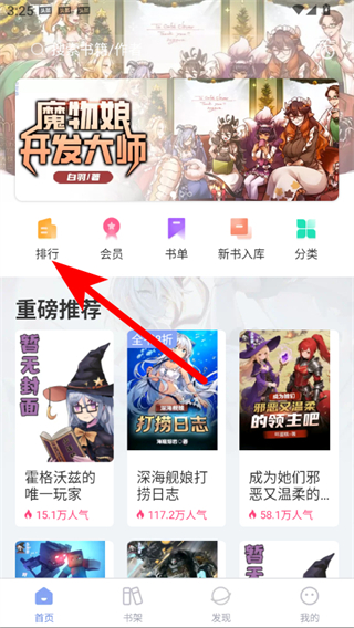 1、在少年梦阅读APP首页,点击排行选项,进入排行页面。