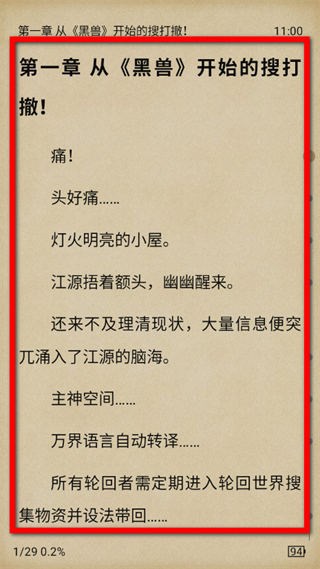 4、在小说阅读界面,即可开始阅读小说内容,查看小说的文字章节等信息。