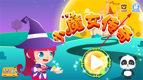 1、打开小魔女传奇,点击右上角的家长中心选项。