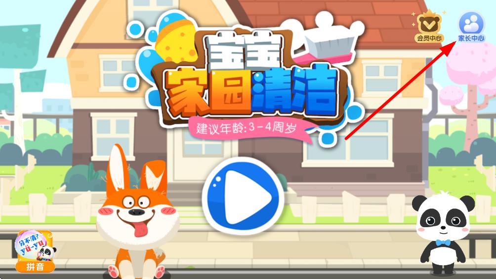 1、打开宝宝家园清洁app,点击右上角的家长中心选项。