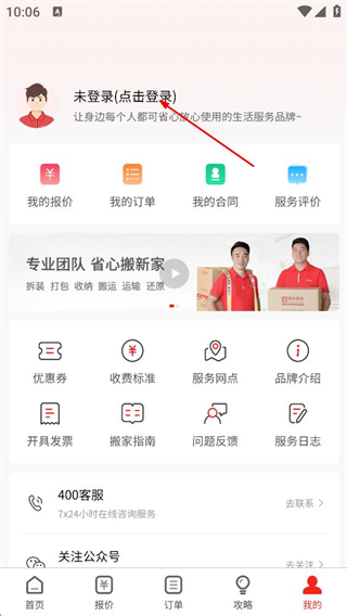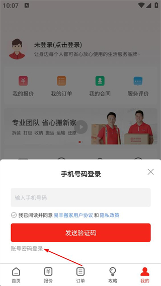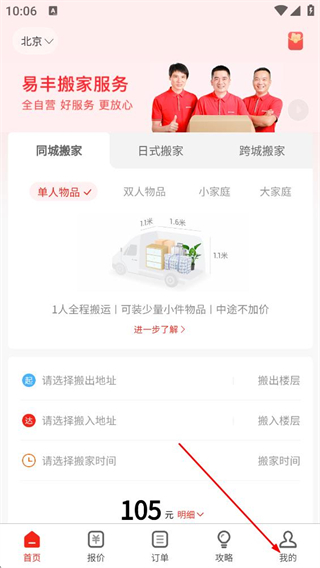 1、在易丰搬家首页,点击底部的我的选项,进入个人页面。