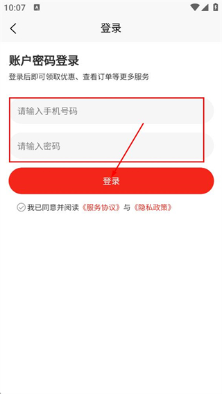 4、在账户密码登录页面,填写手机号码和密码,点击登录,完成账号登录。