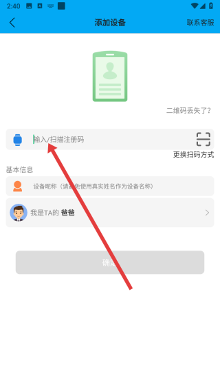 4、在进入到添加设备页面后,点击输入框填写学生卡对应编号信息后,完成添加操作。