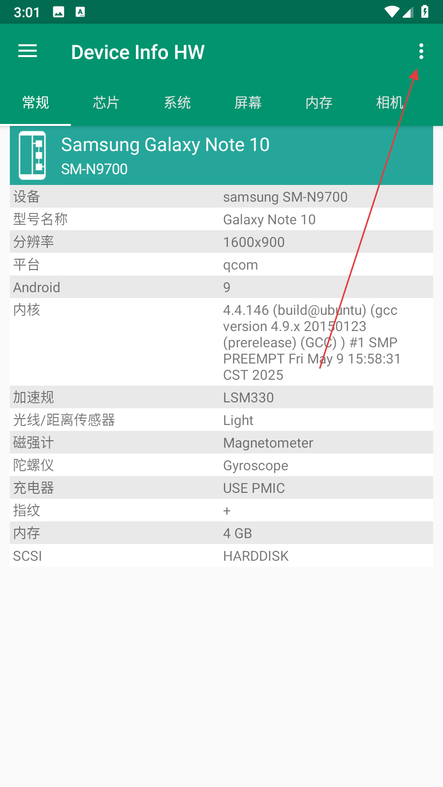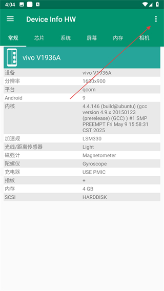 1、打开Device Info HW应用,点击右上角的三点图标。