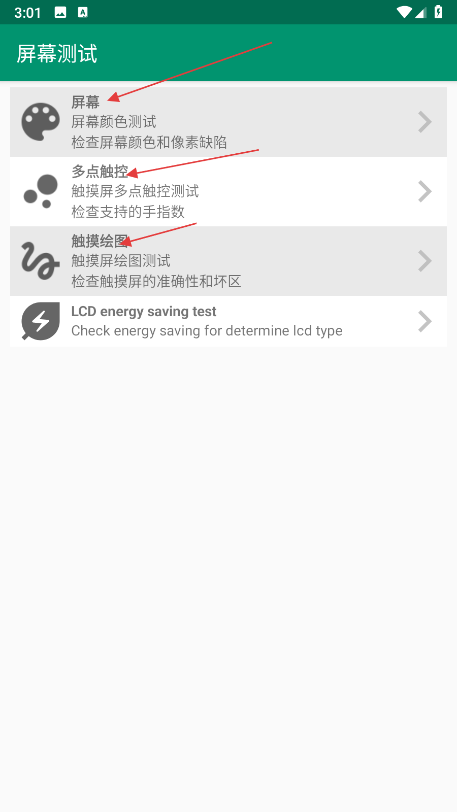 3、根据测试需求,点击对应项目,即可开始相应的屏幕测试。