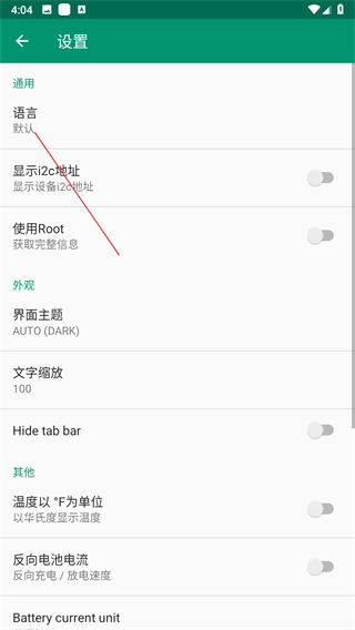 3、在设置页面里,找到并点击语言选项,进入选择页面。